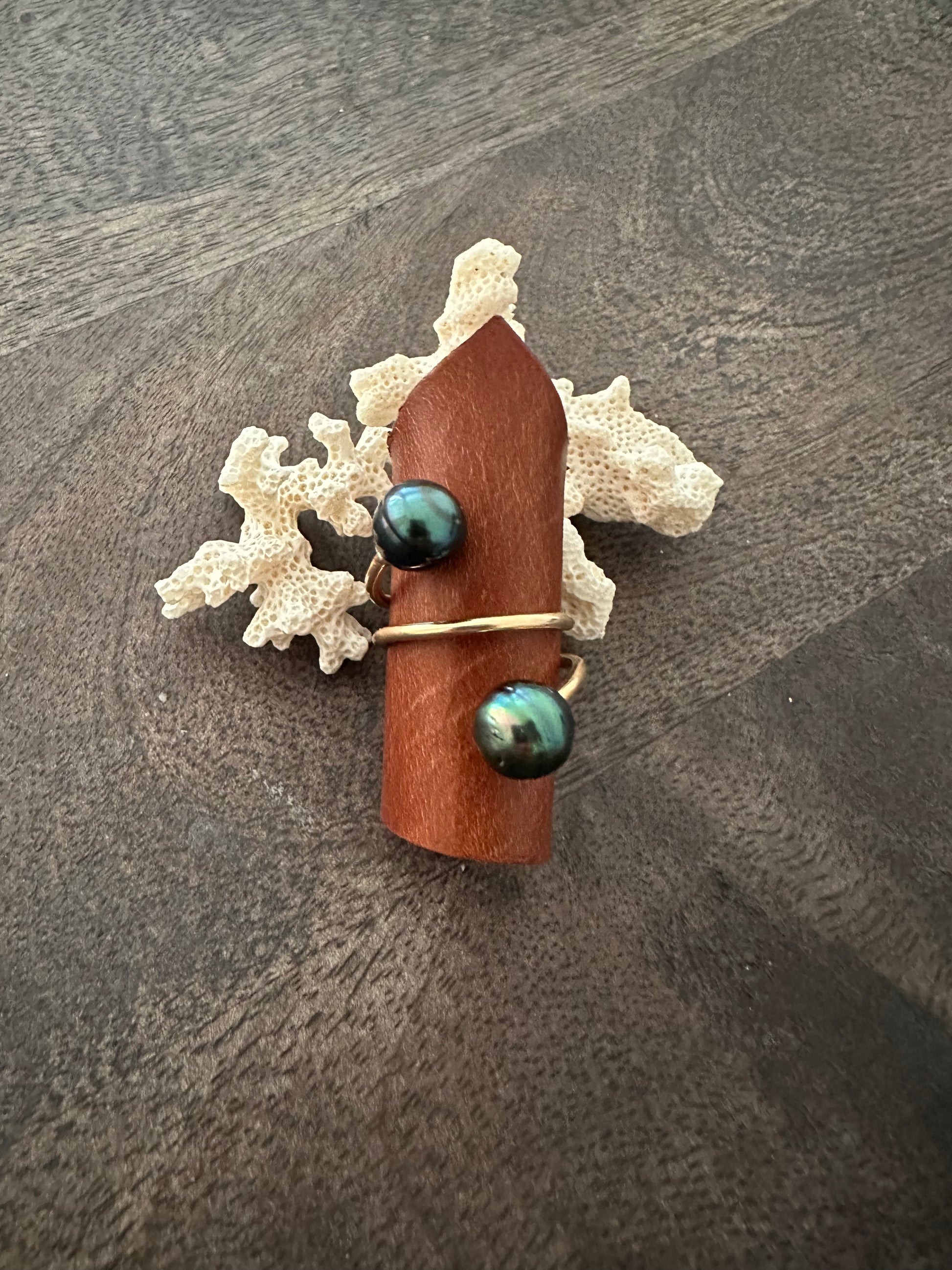 Introducing our Tahitian Tide Twist Rings: Beach Glam Edition with twin Tahitian Pearls, perfect for infusing your look with a touch of beach glam. These rings effortlessly slide on and boast a captivating luster, reminiscent of glistening ocean waves. Crafted for comfort, they come in a size 7 with adjustable features. The classic style of pearls adds a fun and elegant element to your collection, ideal for effortlessly elevating any beach-inspired outfit. Plus, with two pearls, you'll double the charm and allure. Each ring is unique, ensuring you receive the exact embodiment of beach glam sophistication.