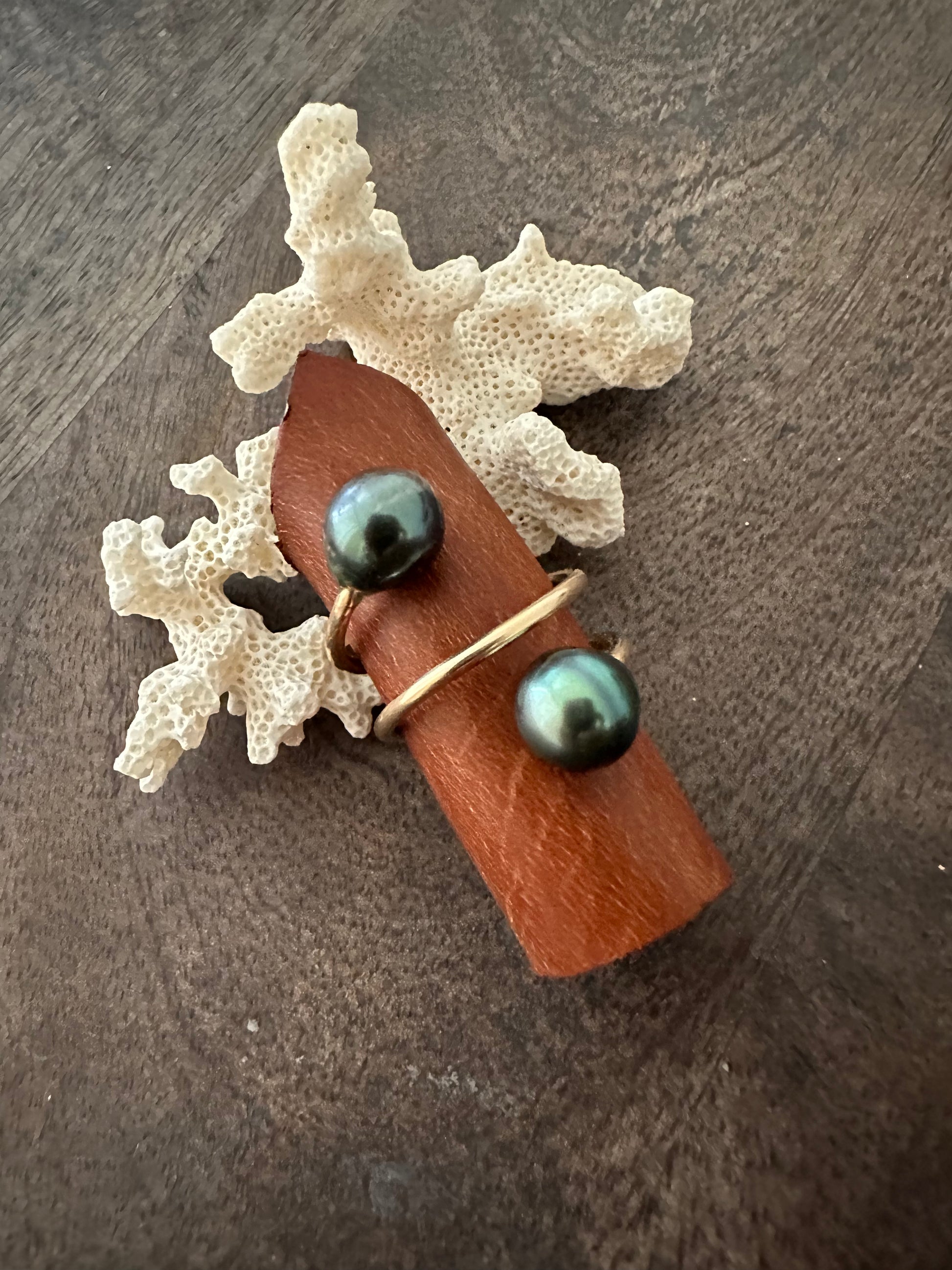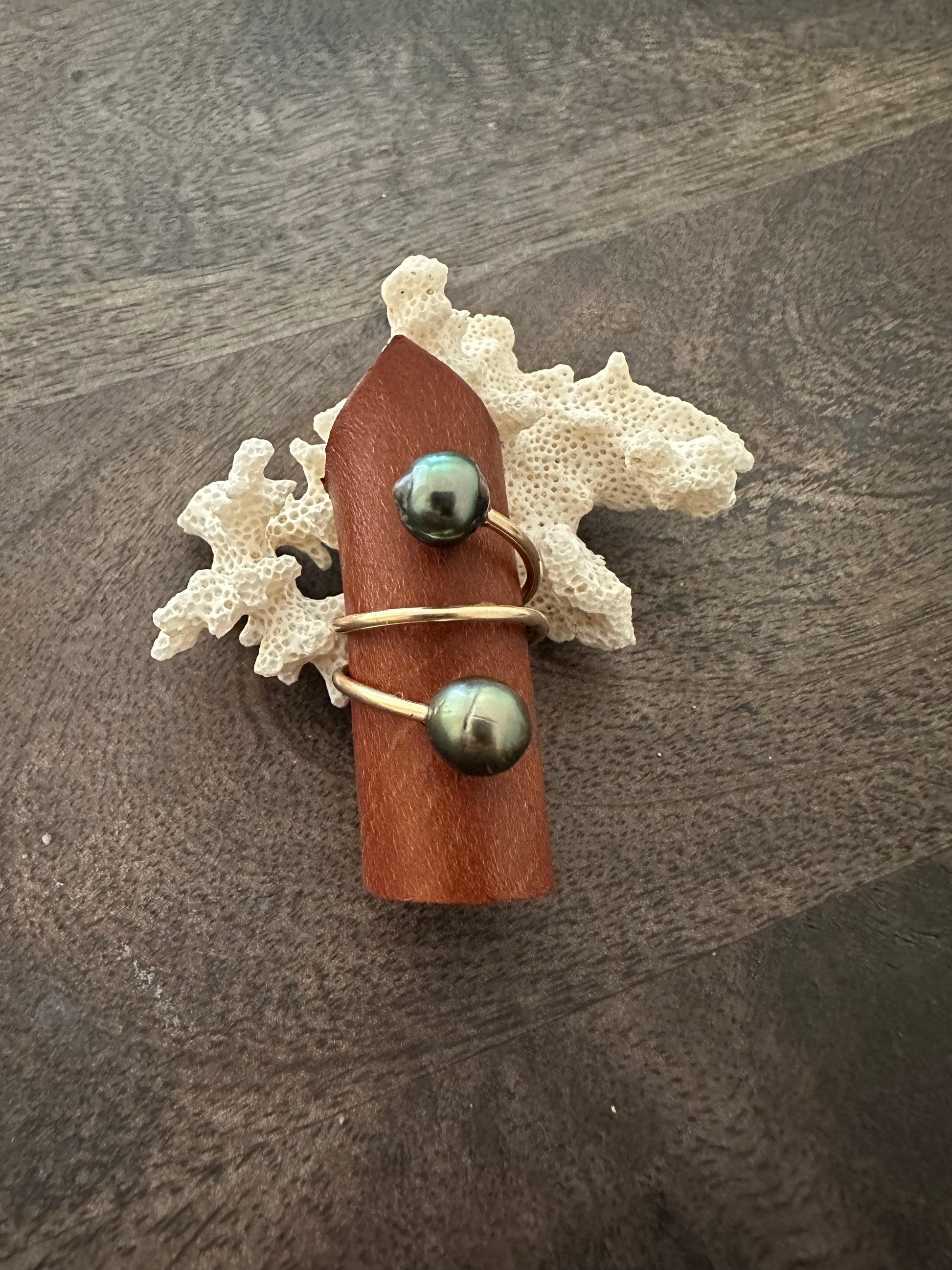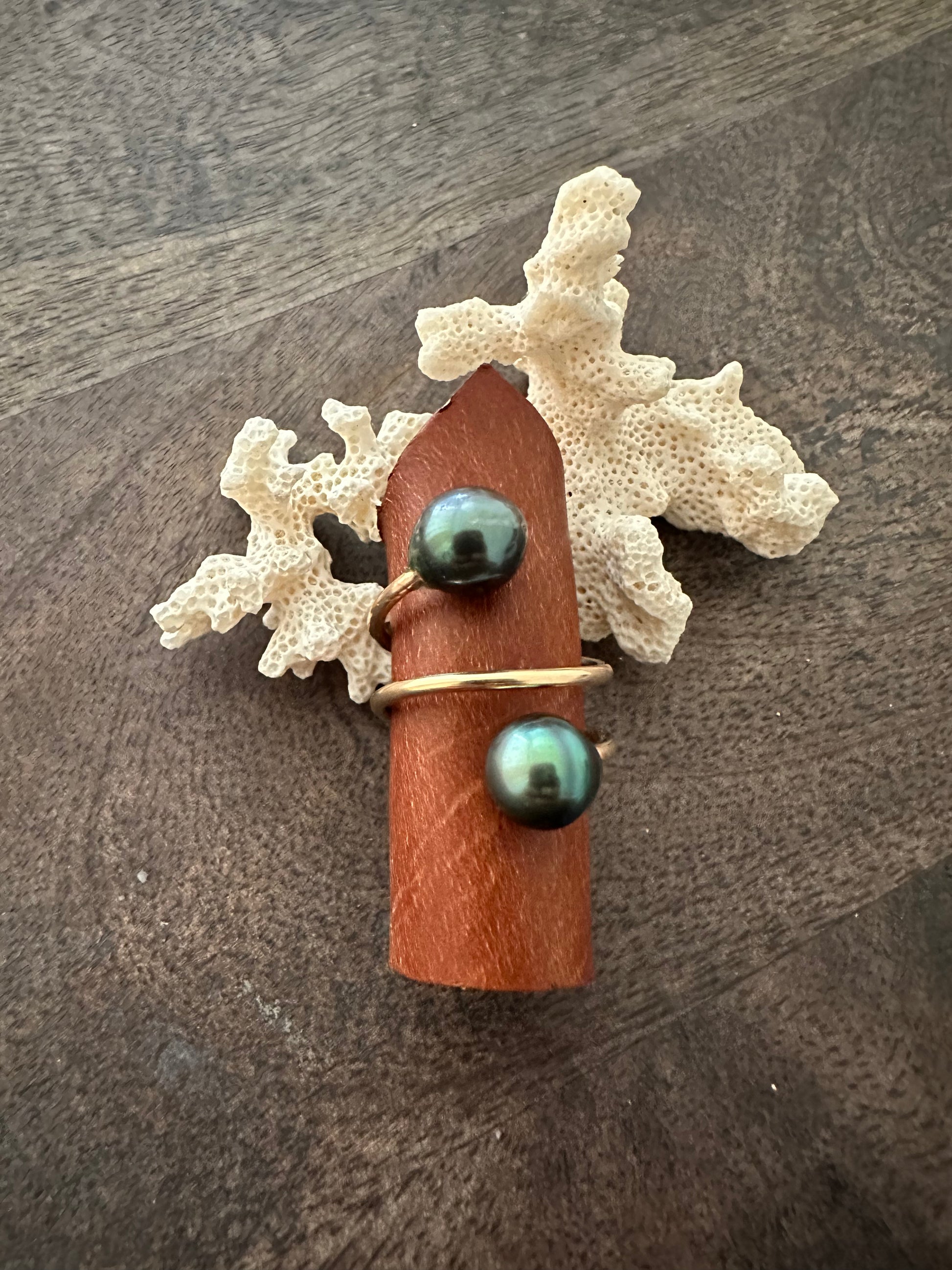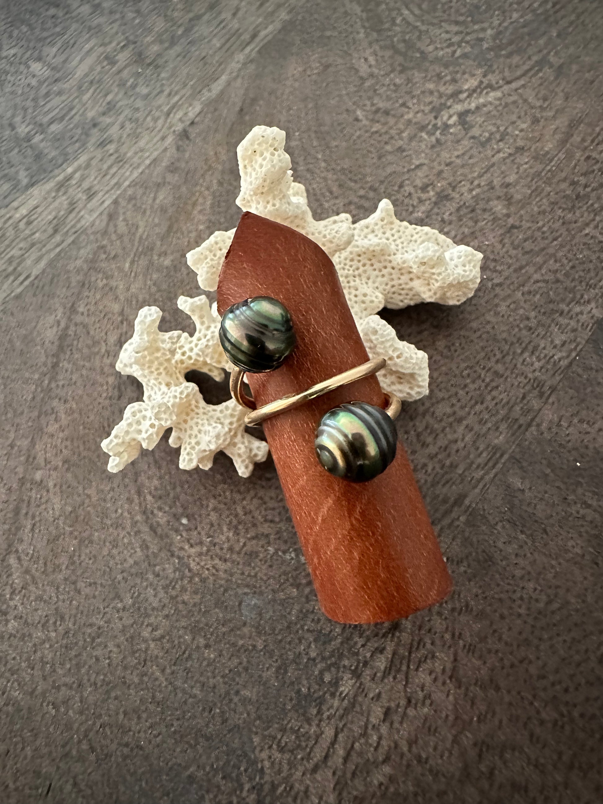Tahitian Tide Twist Adjustable Ring: Gold Filled with Twin Tahitian Pearls