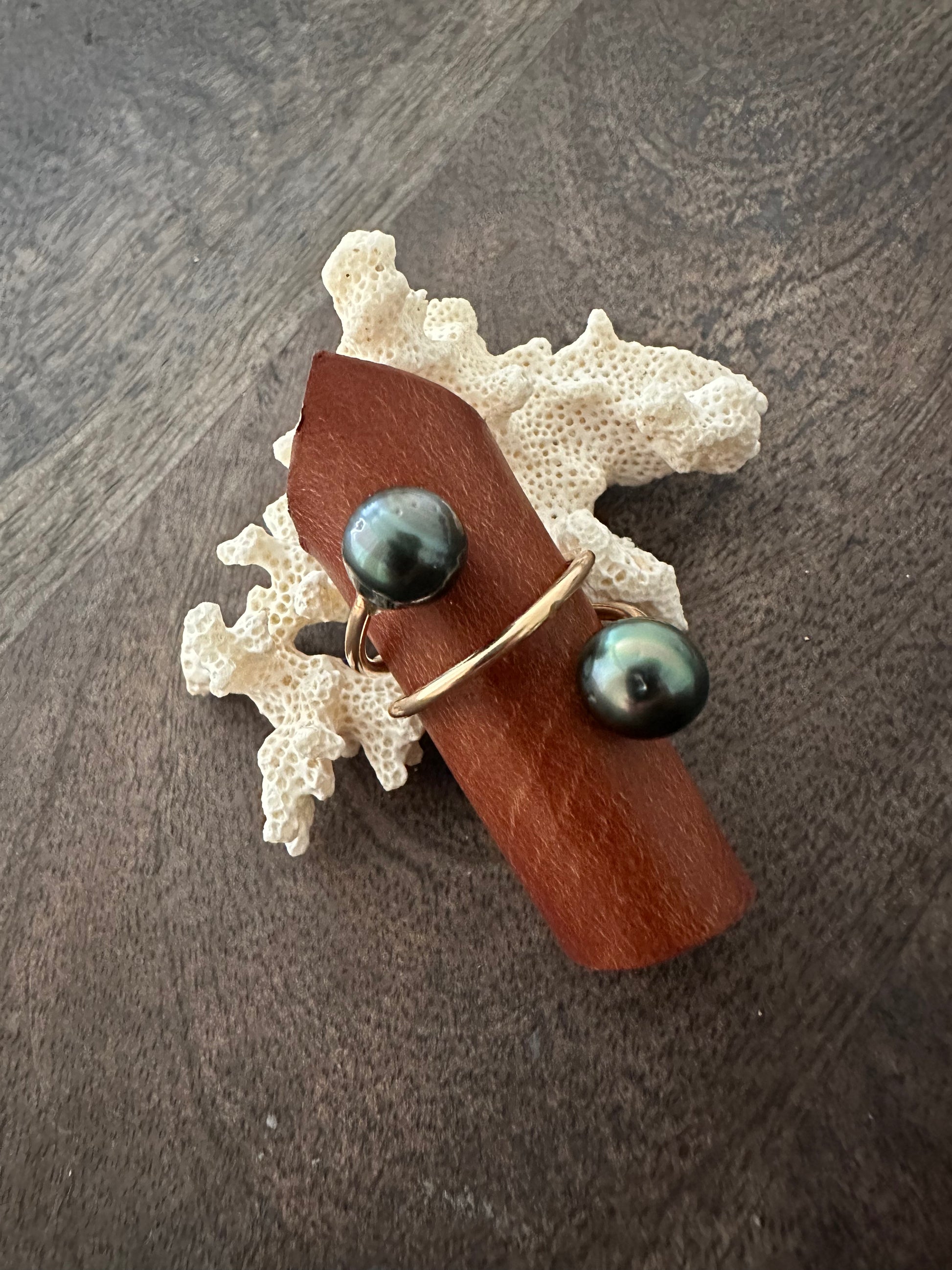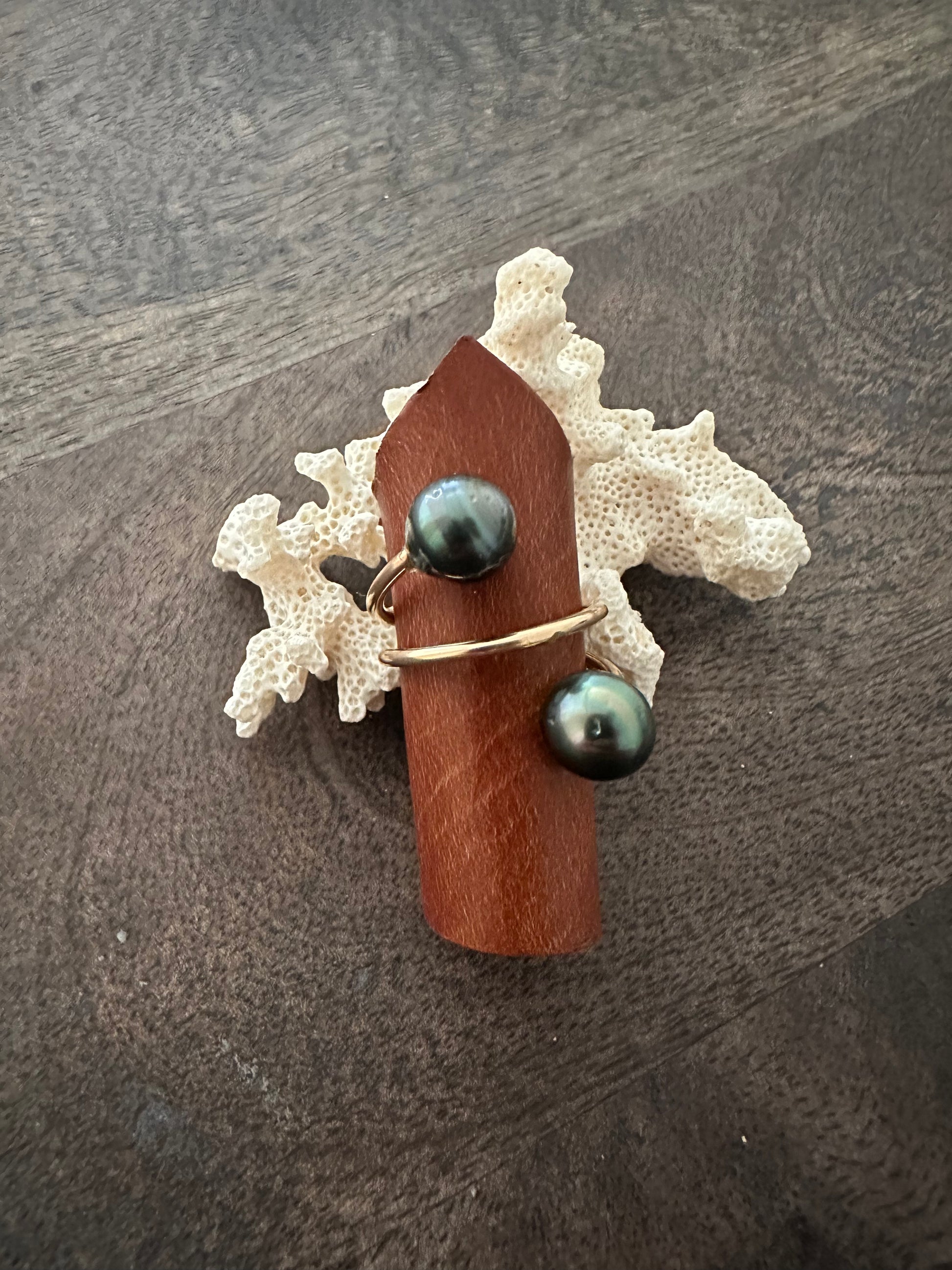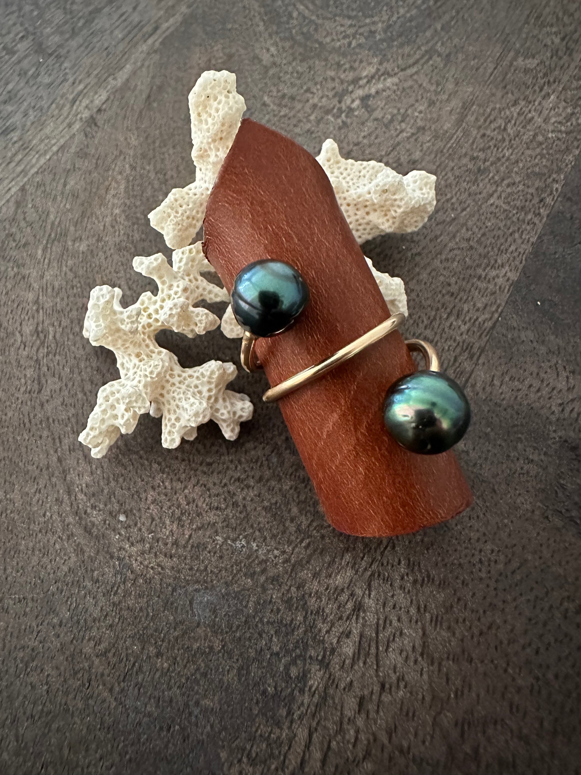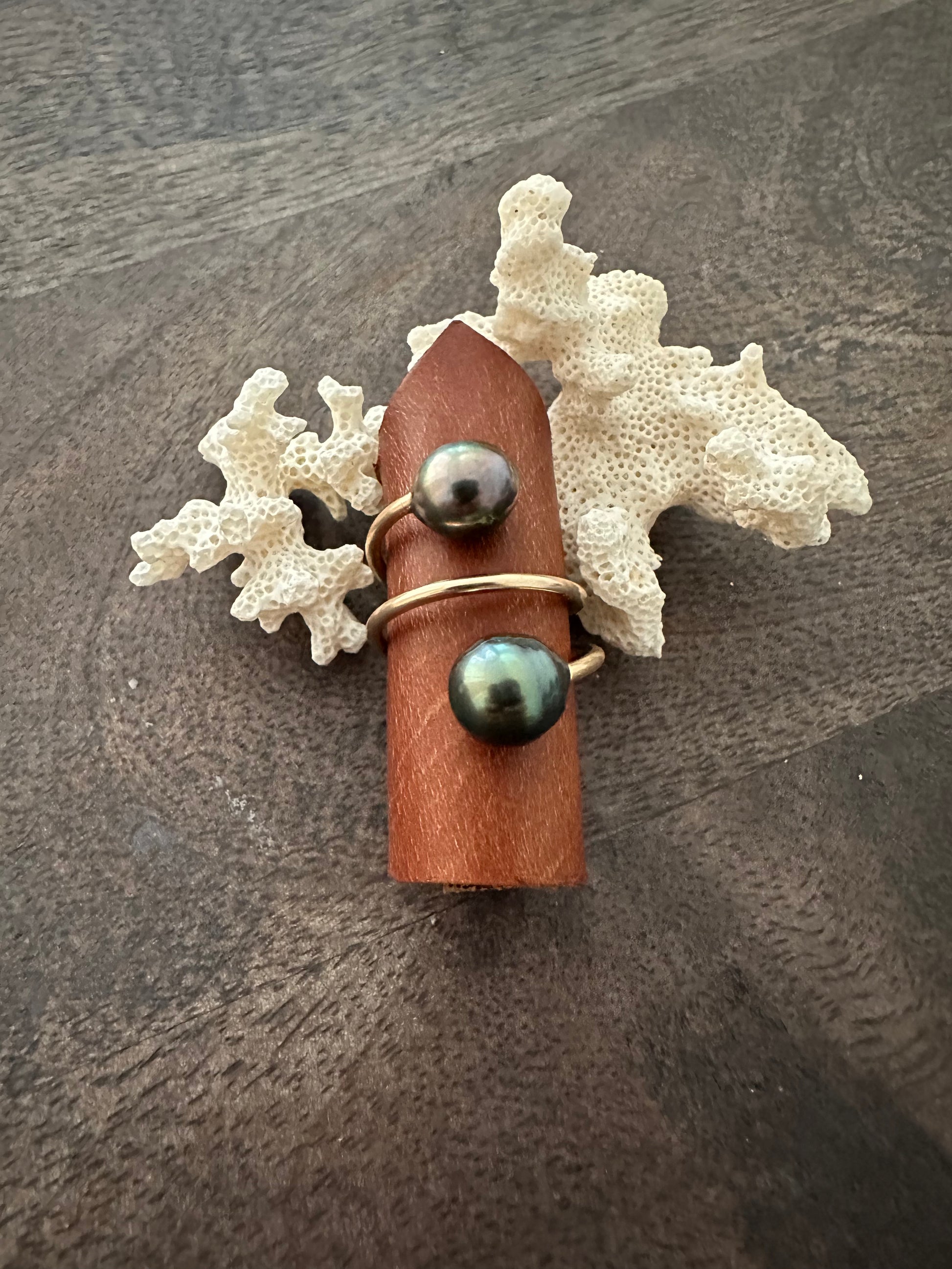 Tahitian Tide Twist Adjustable Ring: Gold Filled with Twin Tahitian Pearls
