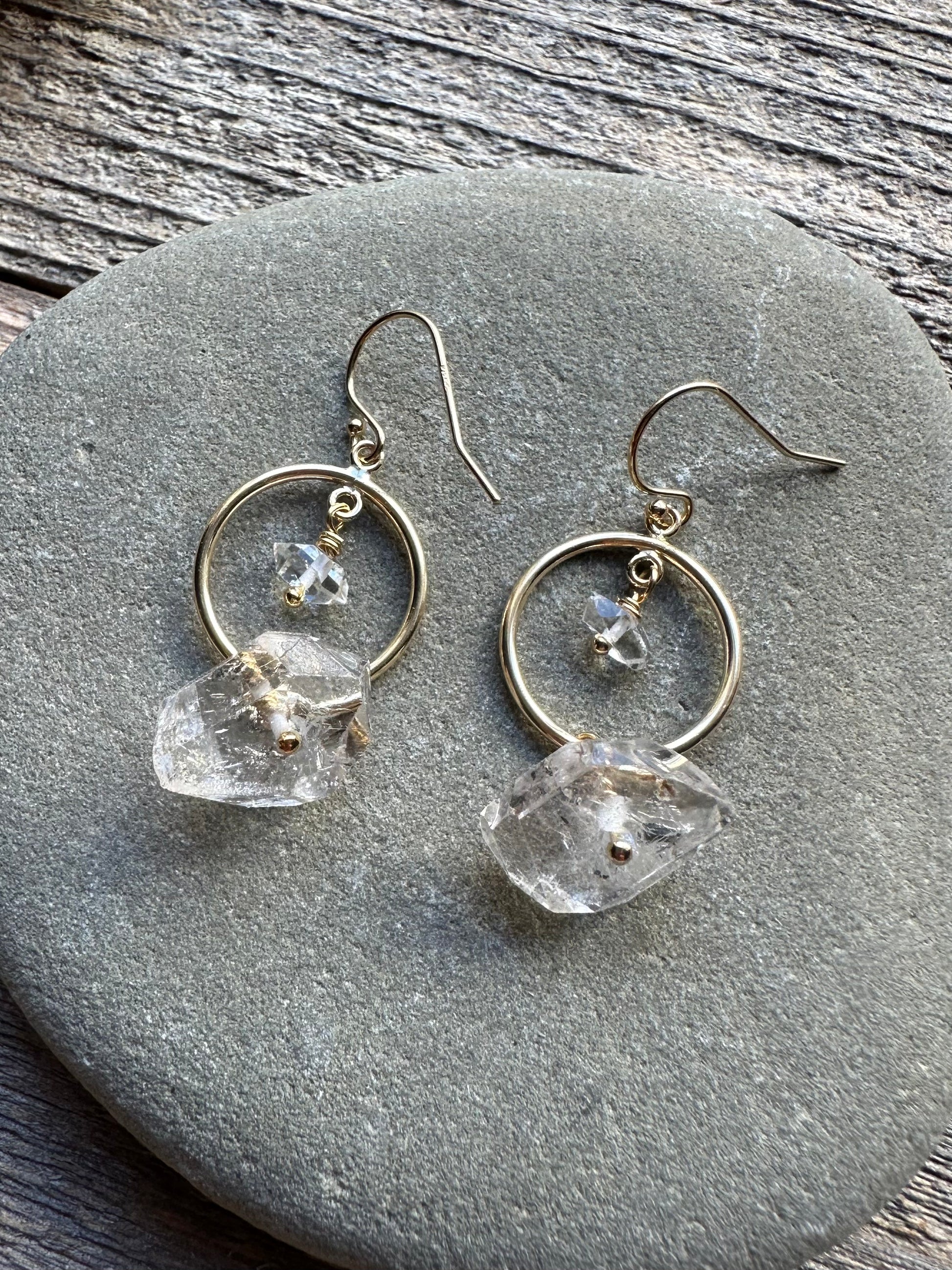 Clarity Herkimer Diamond Circle Gold Filled Earrings