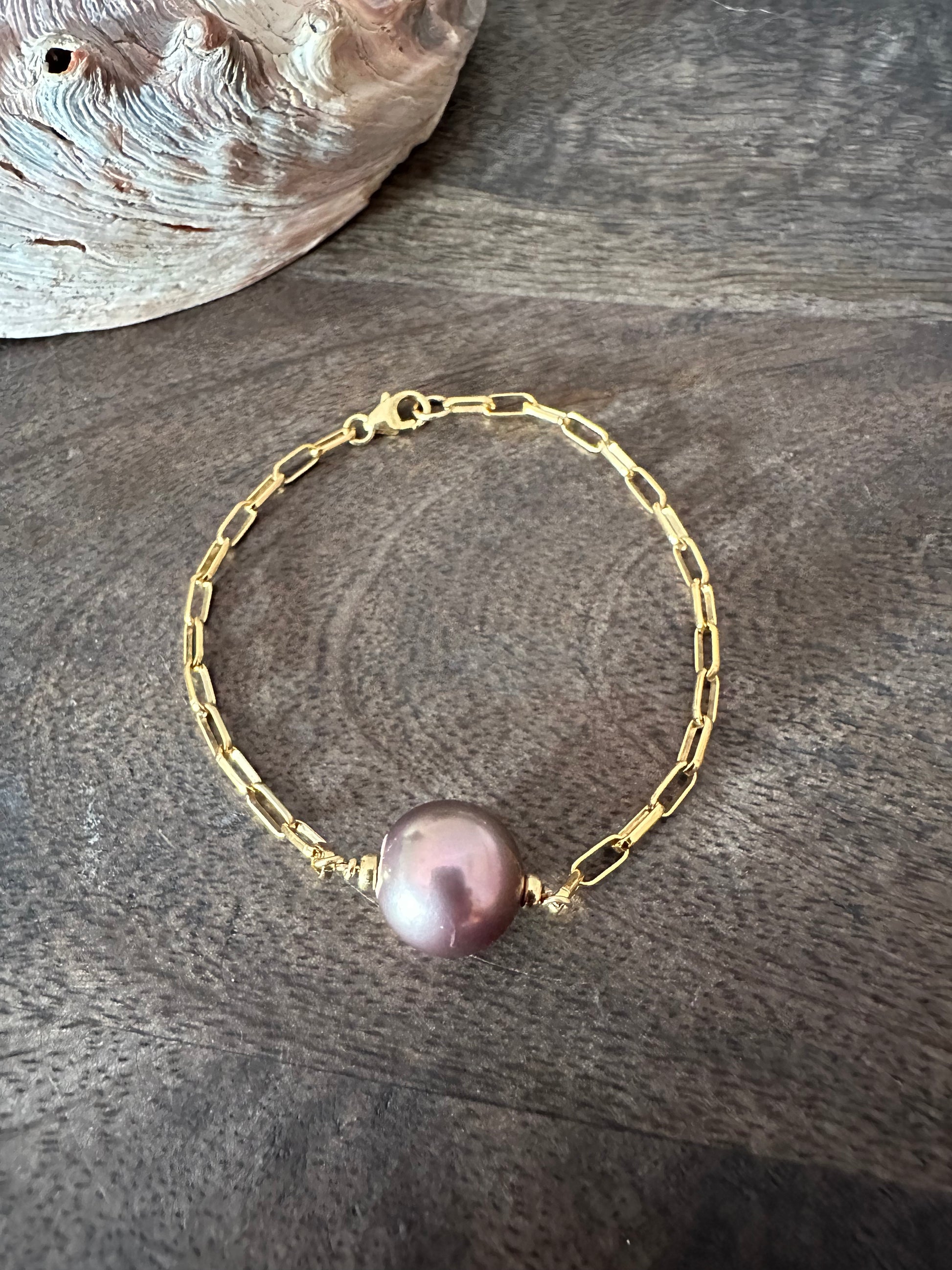 These solid linked Edison, Tahitian or Keshi pearl bracelets are robust and refined. Each pearl is in the 13-14mm range and full of luster. Select your preferred piece to stack or wear individually. The piece you select is the one you will receive.
