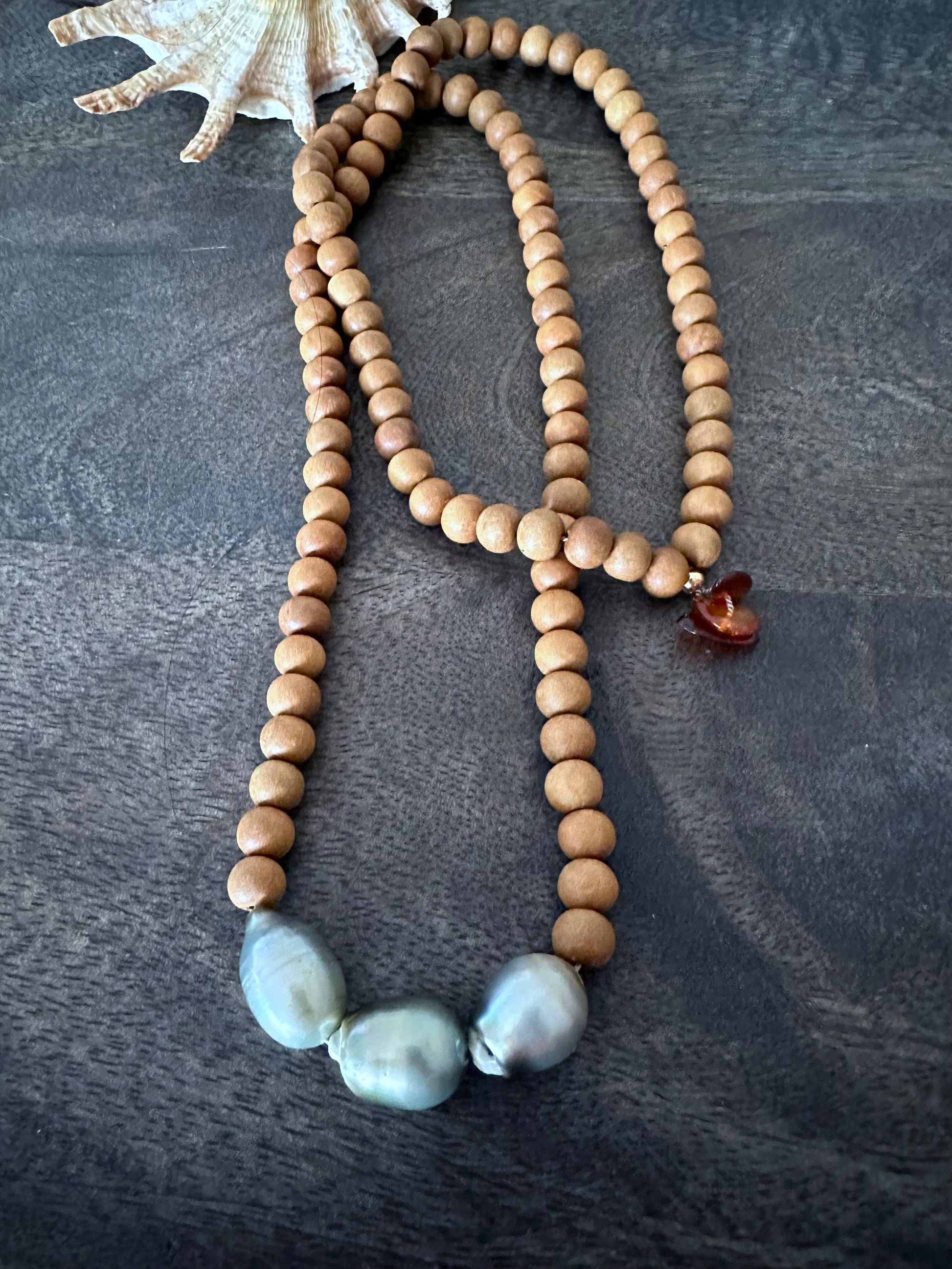 Sacred Tide Mala Necklace With Tahitian Pearls and Sandalwood